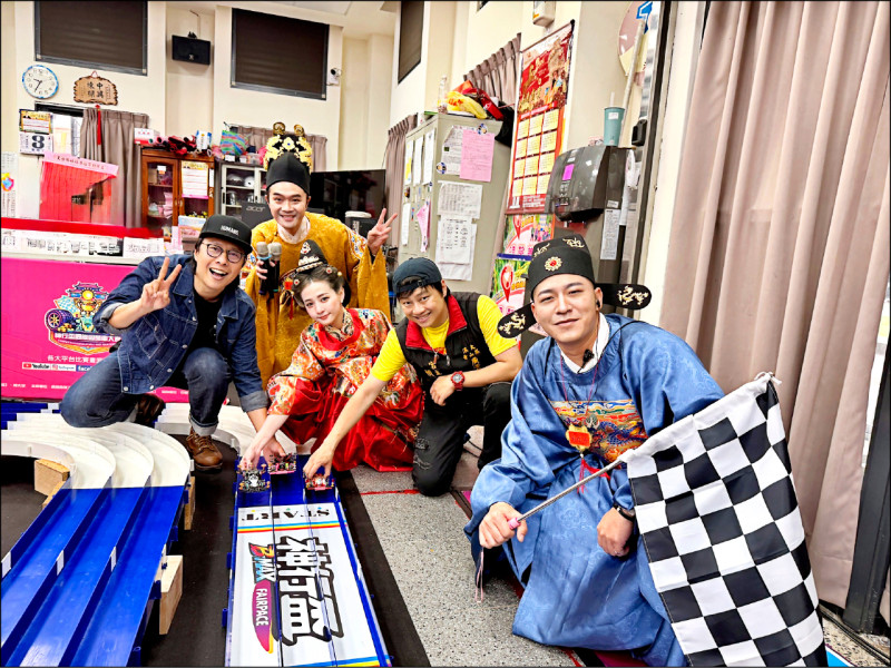 〔記者傅茗渝/台北報導〕由草爺與柯大堡發起的「神行盃國際四驅車大賽」,近日於桃園大溪廣澤宮圓滿落幕。草爺親自化身城隍爺坐鎮,柯大堡扮演西秦王爺,「本本」江佑真則以妙應仙妃造型驚豔亮相,三人聯手在賽道旁為選手加油,下場體驗競速快感。