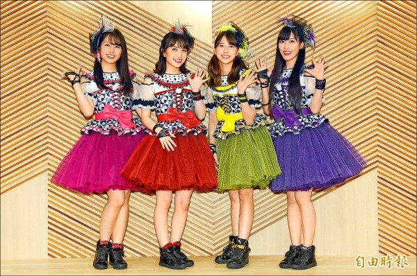 「桃色幸運草Z」成員佐佐木彩夏(左起)、百田夏菜子、玉井詩織和高城蕾妮首度來台,透露團體長壽秘訣都是因為粉絲。(記者趙世勳攝)「桃色幸運草Z」成員佐佐木彩夏(左起)、百田夏菜子、玉井詩織和高城蕾妮首度來台,透露團體長壽秘訣都是因為粉絲。(記者趙世勳攝)