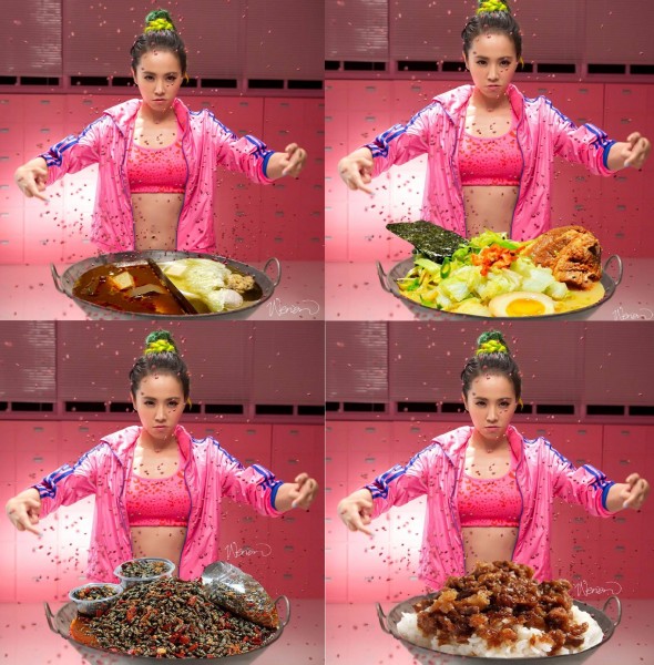將紅豆換成麻辣鍋、燒酒螺、滷肉飯等,爆笑畫面讓人不禁大讚網友後製功力無極限。(照片擷自臉書)唱片公司斥資600萬拍攝《電話皇后》,也是蔡依林首次挑戰喜劇演出,甩開公主包袱,努力秀喜感。不僅用兩根手指頭做伏地挺身,還可以用手指切水果,連她自己都忍不住偷笑。MV中一幕徒手炒紅豆的畫面還被網友惡搞,合成炒麵、麻辣鍋、燒酒螺、滷肉飯等等,其他網友看完不禁大讚太有才,還有人回應「看完都餓了」。