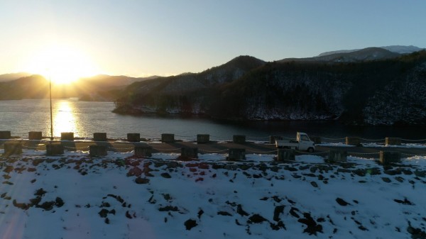 日本岩手縣奧州市與台灣BANG雜誌合作,推出微電影《蘋果派》,講述台日混血兒千里尋母的感人故事,搭配當地風土民情,如女主角特蕾沙(Teresa)就對當地的大壩雪景十分驚豔。(BANG雜誌提供)