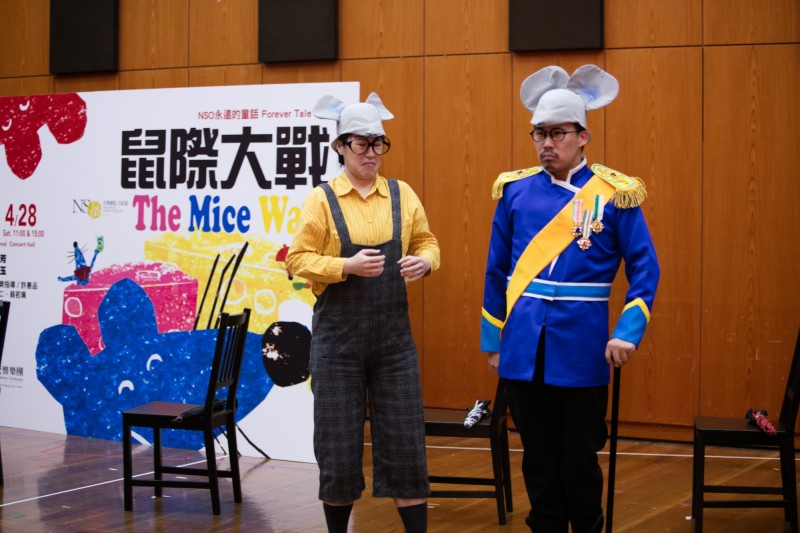 翁若珮(左)和陳威宇分別飾演推動戲劇進行的重要人物,「士兵Albert」和藍鼠國將軍。(國家交響樂團提供)