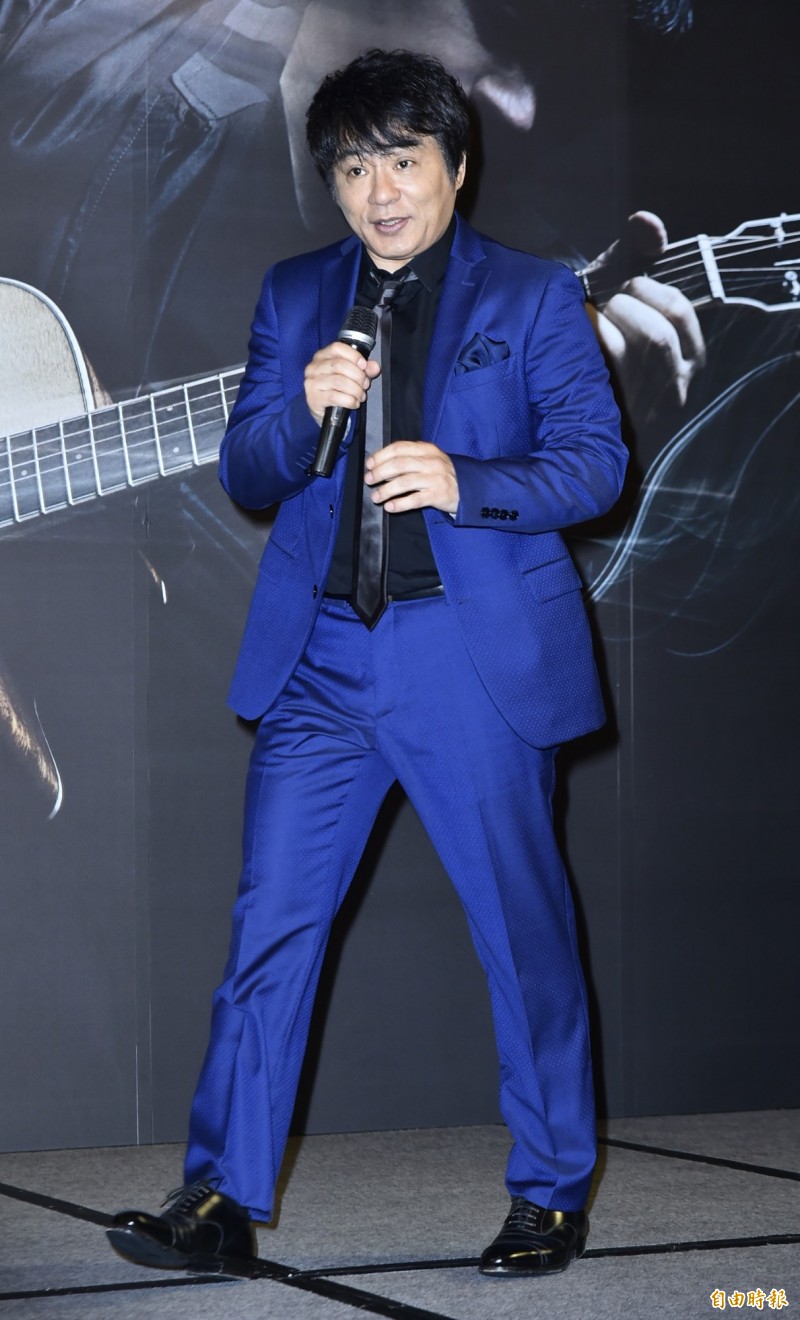 飛鳥涼驚喜宣布將在6月9日移師台北開唱。(記者陳奕全攝)〔記者陳立妍/台北報導〕日本國民樂團「恰克與飛鳥」主唱飛鳥涼2014年驚爆染毒,被判刑3年、緩刑4年,去年11月他展開亞巡宣告復出,受邀來台參加明天的《超級巨星紅白藝能大賞》錄製,下午的記者會他驚喜宣布將在6月9日移師台北開唱,鐵粉楊宗緯為了見偶像特地從中國飛回台灣,除了現場清唱幾句飛鳥涼的名曲《Say Yes》及《On Your Mark》,更送上金色巧克力麥克風,希望他能繼續為歌迷唱下去。