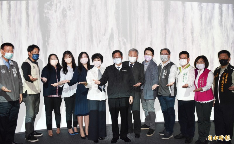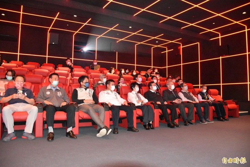 中壢威尼斯影城打造全新影廳,市長鄭文燦(左6)揪團參訪。(記者李容萍攝)