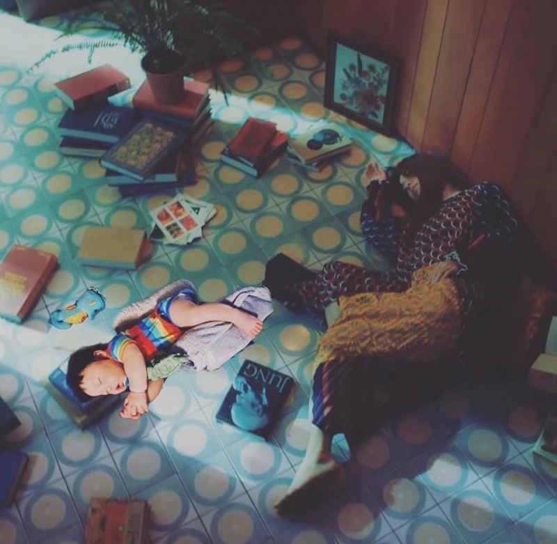 徐佳瑩也立刻被田馥甄的「許願文」吸引,並滿足願望將兒子與田馥甄躺在地板的美照P在一起,讓田馥甄感動地說:「同框了 !同框了!要盈眶了!」徐佳瑩再加碼P一張兒子看著田馥甄眺望的美照,打趣說:「妳才是我們心儀的偶像咧!」有趣的互動逗樂許多粉絲。