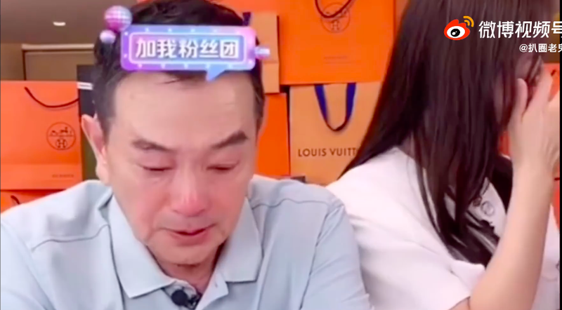張晨光18日在直播時看到酸民留言後,忍不住紅了眼眶。(翻攝自微博)