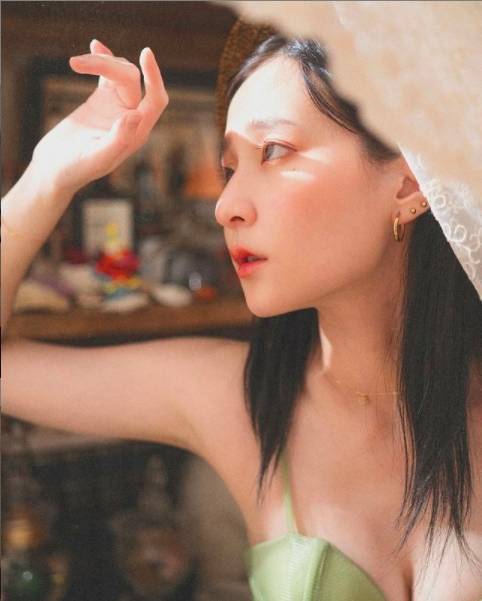 本本穿著綠色低胸細肩背心,微微露出性感的事業線,加上清純臉蛋超惹火,在文中只短短的寫了一字「攝」,並標記攝影師。因此,就有網友質疑她是在用「穿得少」來業配討讚,更直言:「感覺本本加入反骨後已經變了失去初衷,先退追了。」