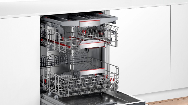 BOSCH新型6、8系列洗碗機,加入強效潔淨區,出水速度為一般水柱的2.5倍。(業者提供)