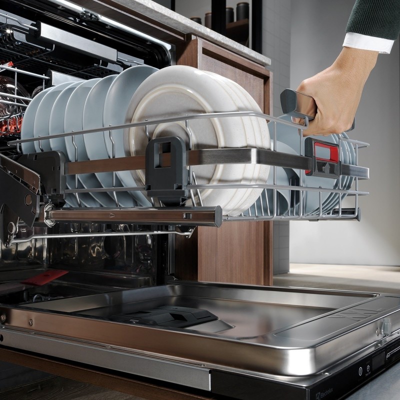 伊萊克斯引進極淨呵護新系列洗碗機,亮點特色是內部碗籃採上拉式設計。(業者提供)