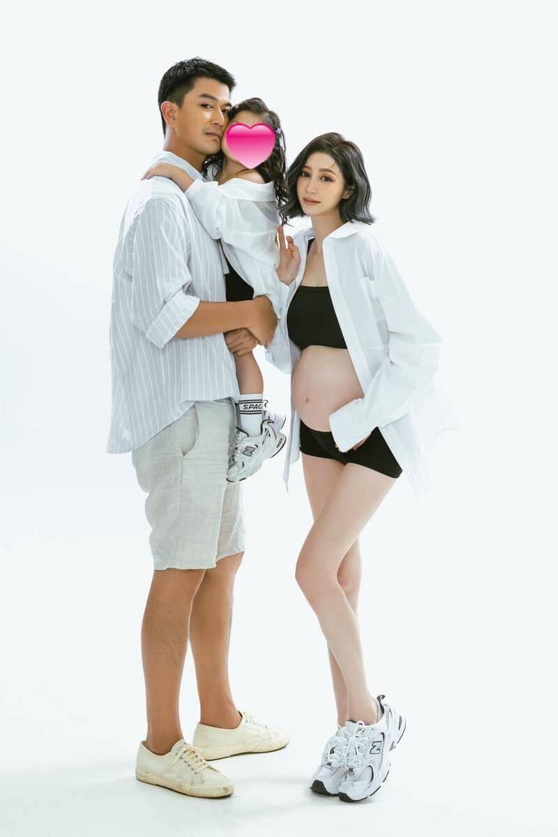 潘逸安(左)日前與老婆Vivian及女兒米估拍攝全家福寫真。(翻攝自臉書)