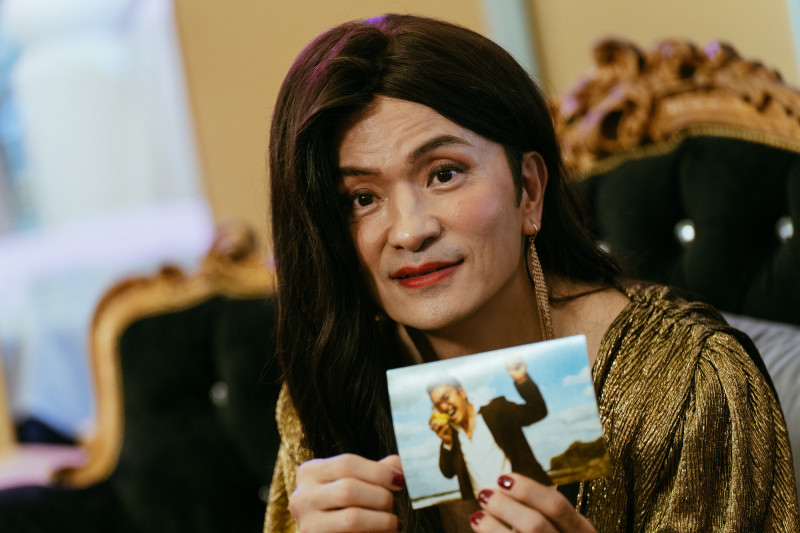 〔記者蕭方綺/台北報導〕唐從聖在茁劇場《綠島金魂》反串女經紀人雷夢娜,劇裡她在人群中找到黃鐙輝飾演的蔡順義,培養成一度當紅的歌手,導演北村豐晴說,當初選擇男性來飾演女經紀人,是靈光閃現的神來一筆,「就想這個經紀人應該有不同之處,一眼就能看出她的不死心和對蔡順義能力的認可,所以大膽用了從從來反串,果然效果很好!」北村豐晴導演還說應該要為他報名下一屆金鐘獎最佳女配角獎。