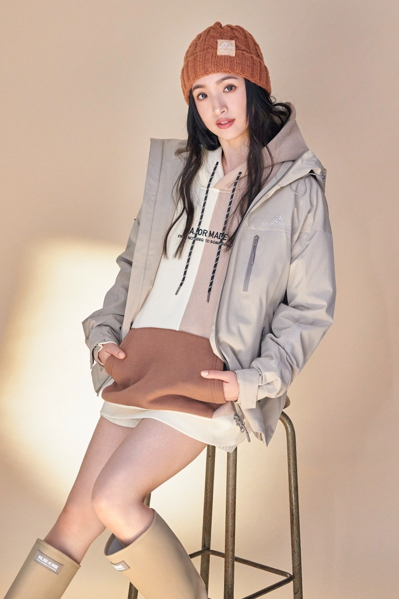 林依晨為代言的機能外套拍攝宣傳照。(翻攝自Major Made官方社群)