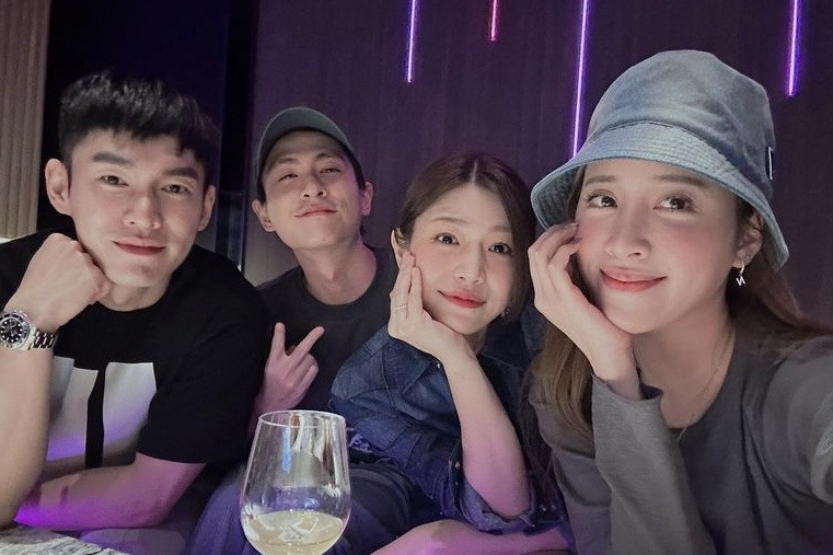 張書豪稍早在社群曬出一張合照,除了他與緋聞女友歐陽妮妮外,還和陳妍希、石知田一同聚會。四人並肩自拍,張書豪笑嘲彼此姿勢「兩位頭痛,我是頭很重~~」