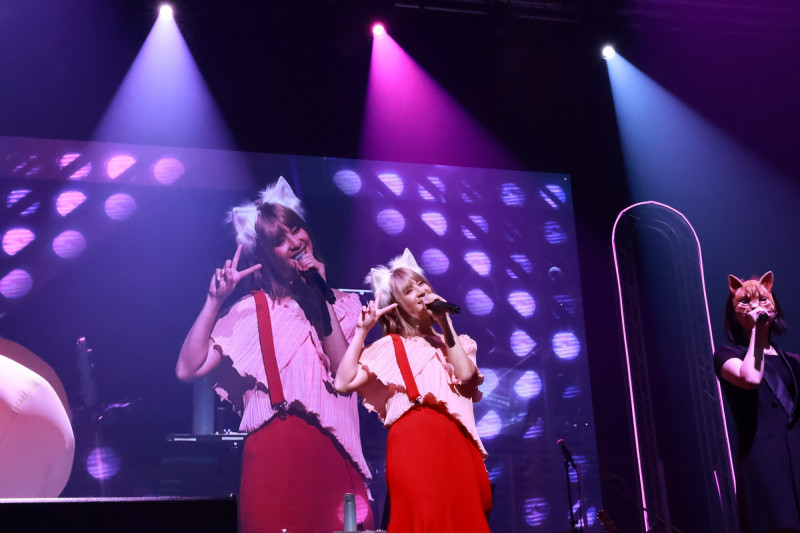 接著舞台燈光繽紛轉場,郭靜秒速變身,戴上毛茸茸白貓耳與迷因墨鏡化身彩虹貓,台上樂手及合音也一起戴上喵臉面具,舞台上瞬間成為喵星人樂團,帶來一連串奇幻感的搖滾輕電音,她獻唱創作新曲《喵喵咪呀》、更帶來網路洗腦神曲《喵電感應》,以及S.H.E的經典曲《波斯貓》,現場氣氛歡樂。