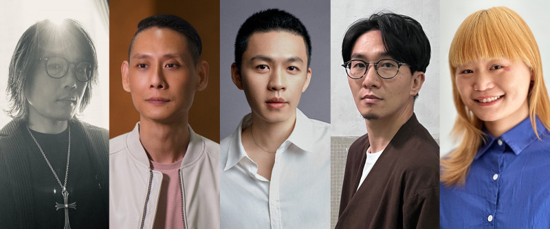 金馬60新導演論壇包括孫杰(左起)、王禮霖、李鴻其、卓亦謙、阿爛5位新導演入圍者。(金馬執委會提供)