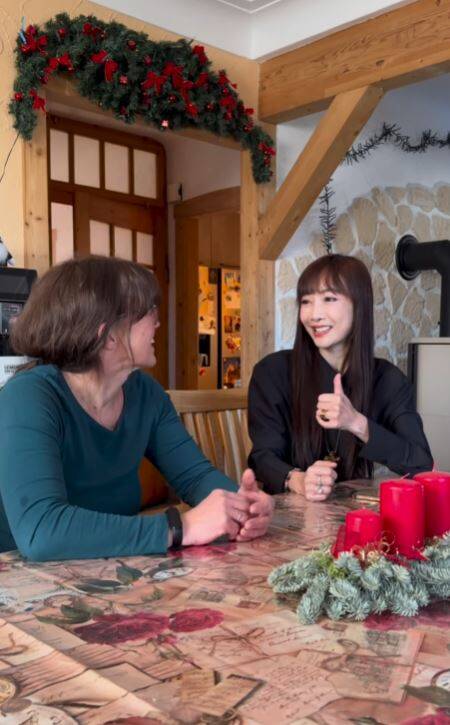 胡文英(左圖黑衣)初見德國親家就教台灣髒話。(翻攝自鄭靚歆IG)