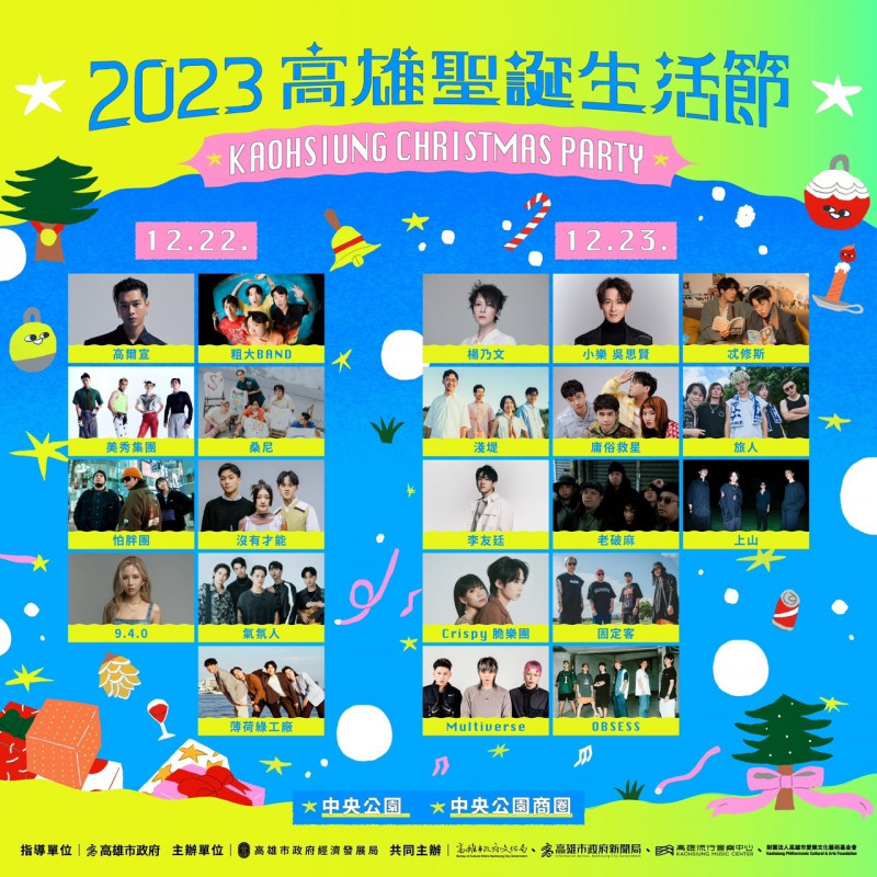 〔記者王榮祥/高雄報導〕2023高雄聖誕生活節已於12/15點亮25公尺高的耶誕樹與光環境藝術,本週五(12/22)起以雙舞台加三大主題市集揭開序曲,楊乃文、美秀集團、高爾宣、怕胖團在活動前夕拍攝短片,邀請大家一起來中央公園過耶誕。