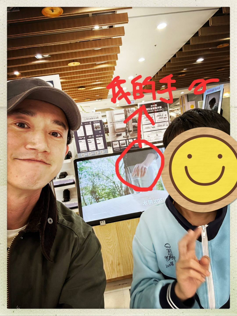 金馬影帝吳慷仁就在眼前,弟弟卻露出一臉不敢相信的表情。(翻攝自臉書)