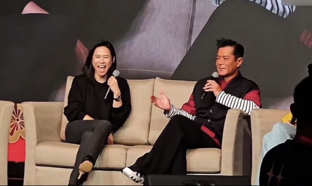 宣萱(左)與古天樂笑看結婚傳言,古天樂也再次澄清為謠言。(翻攝自微博)