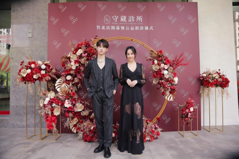 關穎(右)、洪暐哲擔任醫美診所開幕剪綵嘉賓。(守葳醫美集團提供)