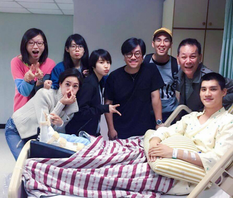 羅宏正(前)2016年拍攝《High 5制霸青春》不慎受傷,右腳踝粉碎性骨折,住院住了1個半月。(翻攝自臉書)