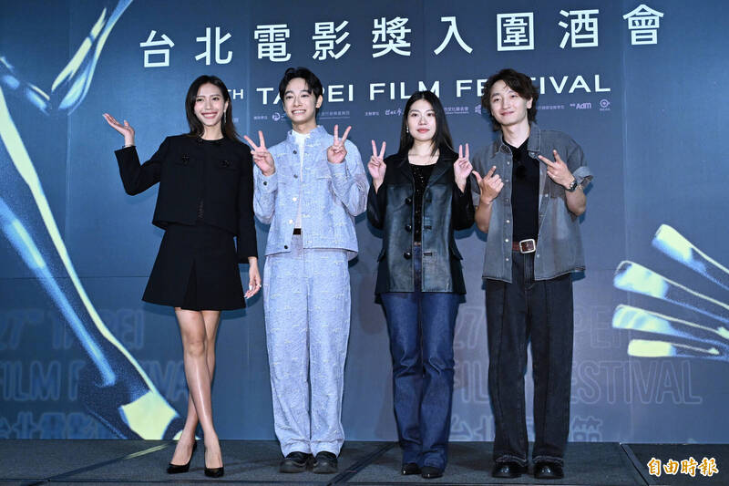 黃珮琪(左起)、劉修甫、梁湘華、林政勳出席台北電影節入圍酒會,一起競逐最佳新演員獎。(記者胡舜翔攝)