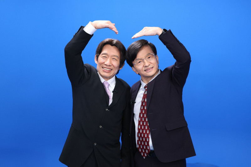 〔記者林欣穎/台北報導〕郭子乾主持《鄉民大學問》迎來第100集,郭子乾再度扮演「賴青德」並找來老搭檔唐從聖重出江湖扮演久違的「阿匾總統」,唐從聖笑說:「鄉民播這麼久,都沒有邀請阿匾總統來,這次終於輪到我出馬了!」