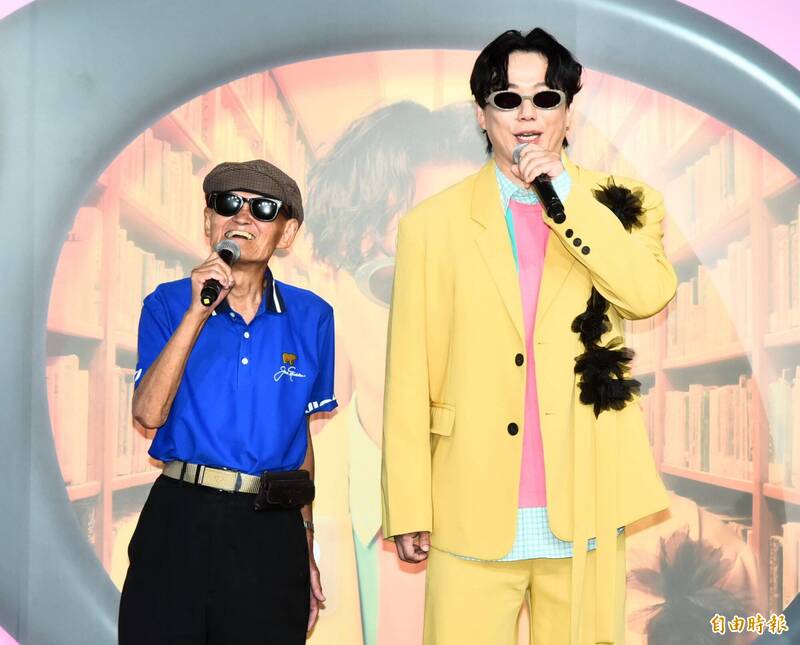 蕭煌奇(左)特別邀請76歲的李炳輝(右)合唱新歌《輝煌旅行社》。(記者陳奕全攝)