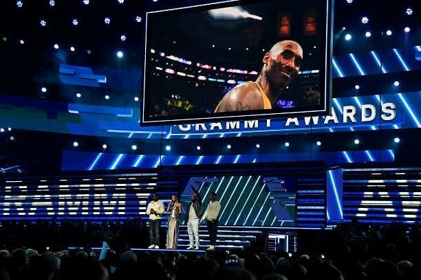 第62屆葛萊美獎典禮一開始,螢光幕上便高掛Kobe的照片悼念。(翻攝自IG)
