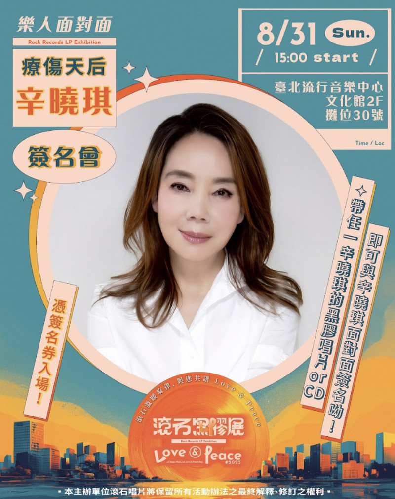 滾石音樂邀請辛曉琪親臨攤位。(台北流行音樂中心提供)