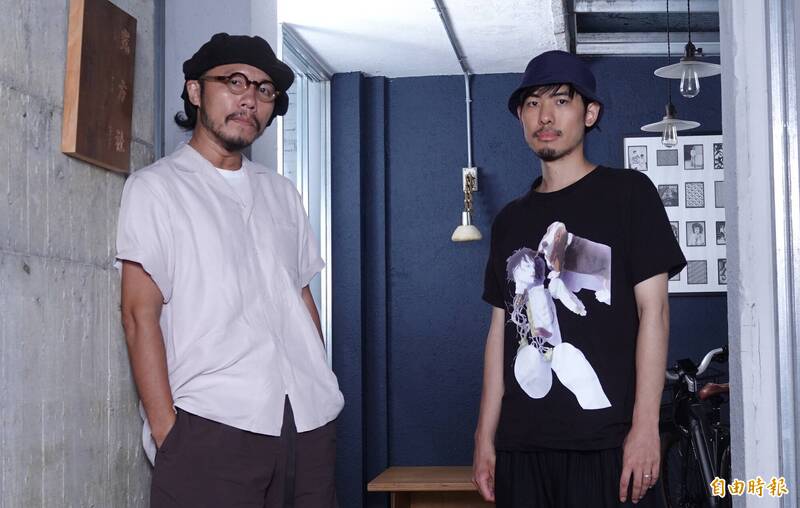 方序中(左)受訪時也專心聽董十行分享他的創作理念。(記者潘少棠攝)