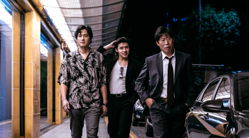 朴海俊(左起)、姜河那、柳海真於《黑白線人》同台飆戲。(可樂電影提供)
