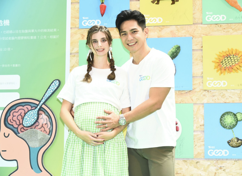 佳娜挺8個月孕肚與祖雄出席記者會活動。(記者陳奕全攝)