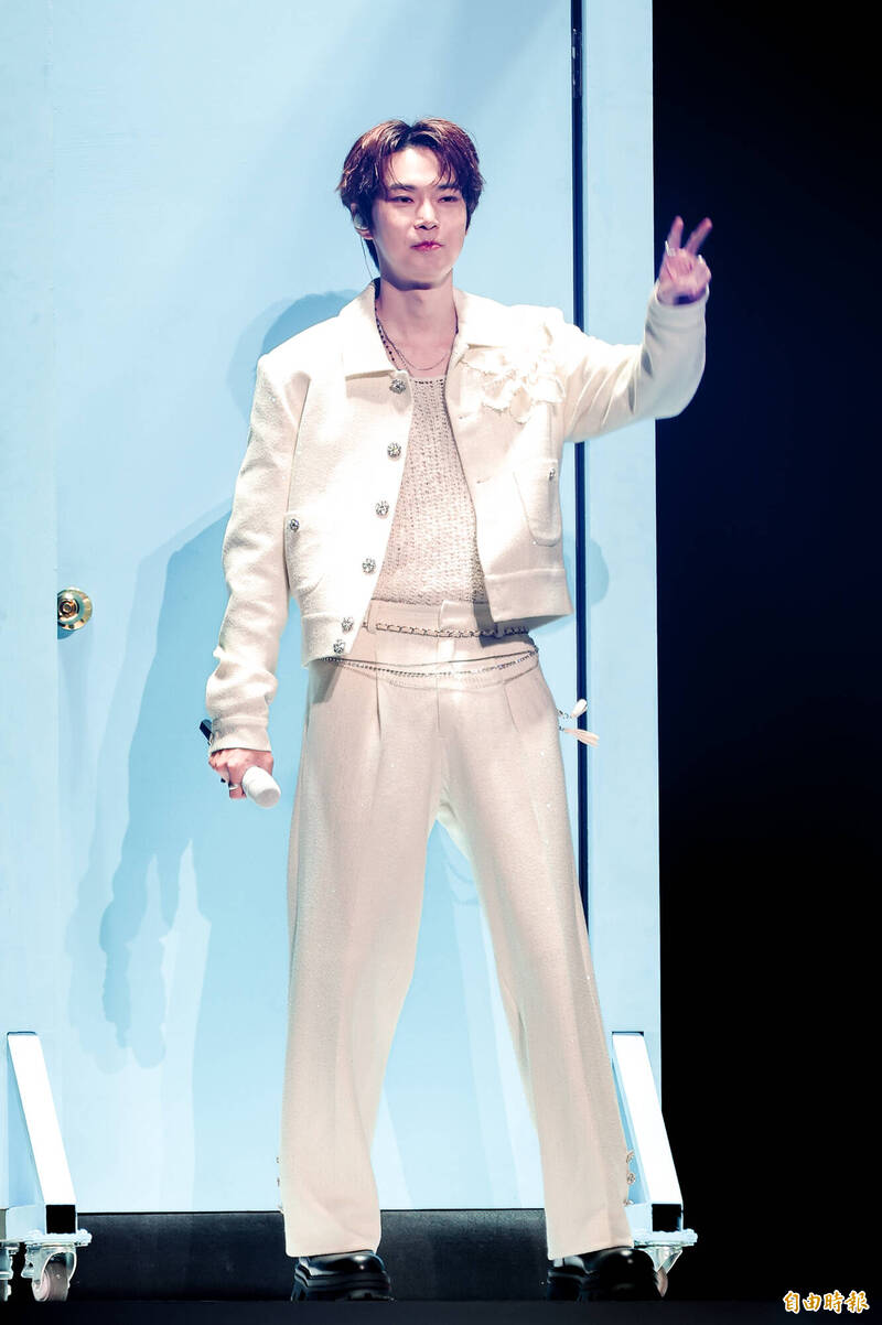 道英左手放在耳朵旁邊,要粉絲大聲唱到穿透他的耳朵。(記者王文麟攝)