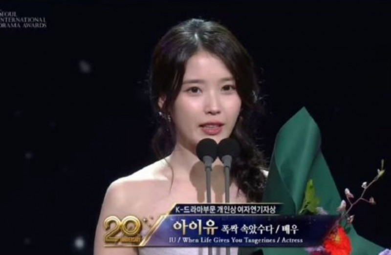 IU以韓劇《苦盡柑來遇見你》獲首爾國際電視節最佳女主角獎。(翻攝自YouTube)