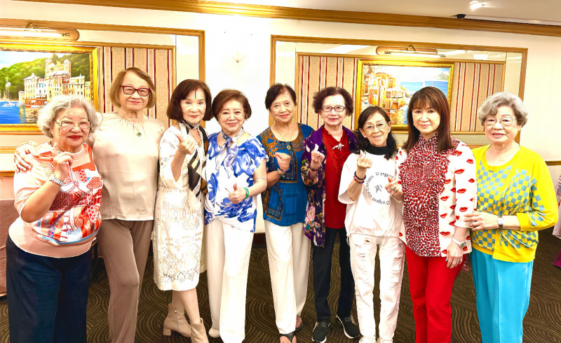 陳淑芳(左四)與國中同學齊聚一堂,重溫往日時光,場面溫馨。(翰森娛樂提供)