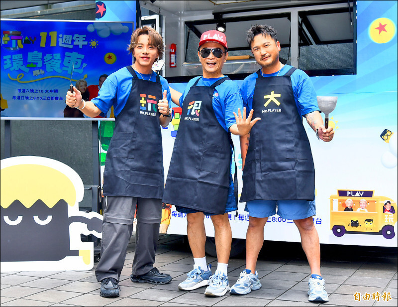吳宗憲(中)率KID(右)、坤達主持《綜藝玩很大》。(資料照,記者陳奕全攝)