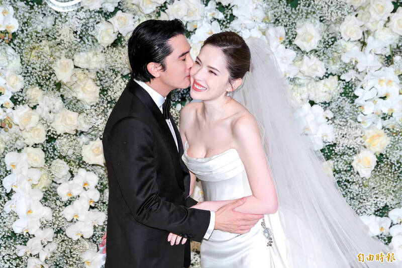 許瑋甯(右)與邱澤合作電影《當男人戀愛時》因戲結緣,今補辦婚禮。(記者王文麟攝)
