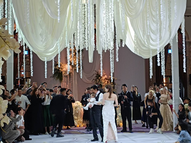 邱澤在婚宴上抱著三個月大的兒子Ina。(翻攝自臉書)