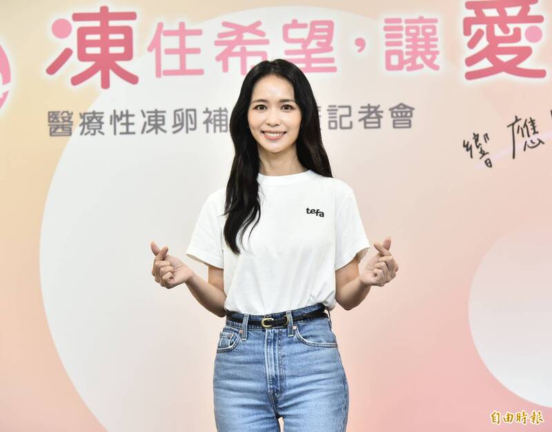 陳明珠以凍卵協會TEFA大使身分亮相。(記者陳奕全攝)