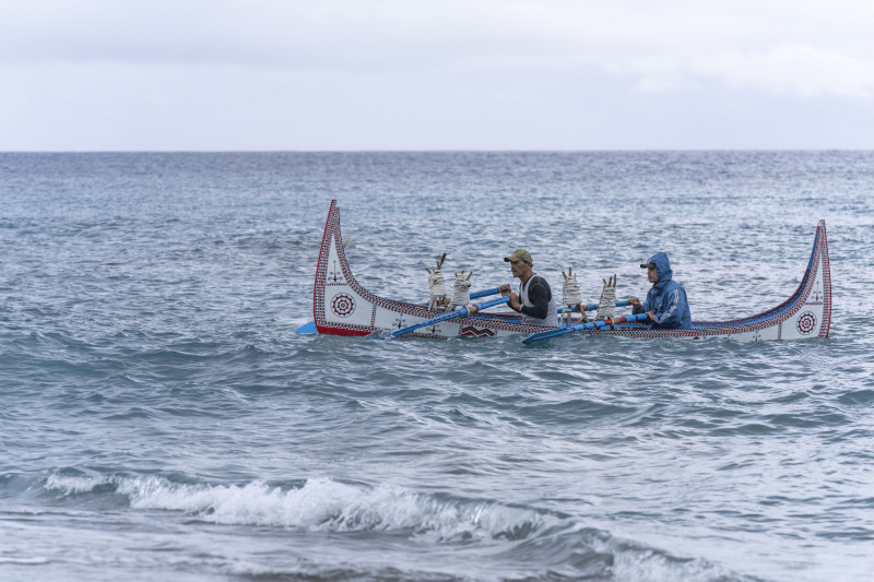 《大海浮夢》夏曼藍波安父子啟動拼板舟旅程,以行動承載部落記憶與海洋智慧。(目宿媒體提供)