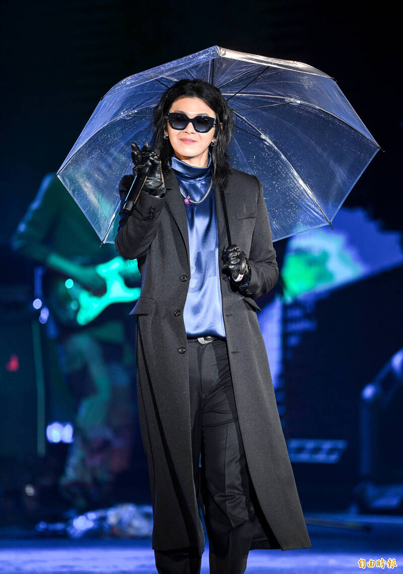 〔記者林欣穎/台北報導〕2025新北歡樂耶誕城「巨星耶誕演唱會—The Greatest Show」今(13)日晚間登場,稍早金曲樂團「MIXER」麋先生打頭陣開唱,帶來5首歌曲,不過今天傍晚就開始下起毛毛雨,隨著入夜雨勢漸大,主唱聖皓還唱到撐傘。