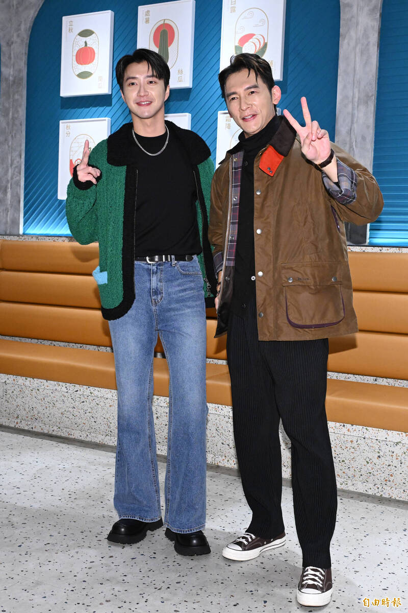 江宏傑今(17)日與温昇豪出席《客家廚房》第二季記者會。(記者胡舜翔攝)