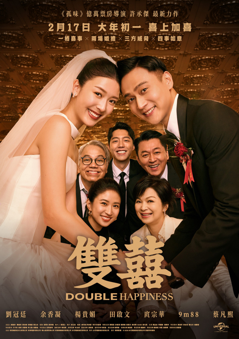 〔記者廖俐惠/綜合報導〕電影《雙囍》今天(25日)釋出正式預告與正式海報,《雙囍》正式海報視覺以婚宴會場內的合照營造出濃厚喜慶氛圍,由劉冠廷、余香凝飾演的新人甜蜜領軍,兩人頭靠著頭、笑容燦爛,與楊貴媚、田啟文、庹宗華、9m88、蔡凡熙眾人相依合影,融洽氣氛的大合照背後,藏著不少歡笑與淚水。