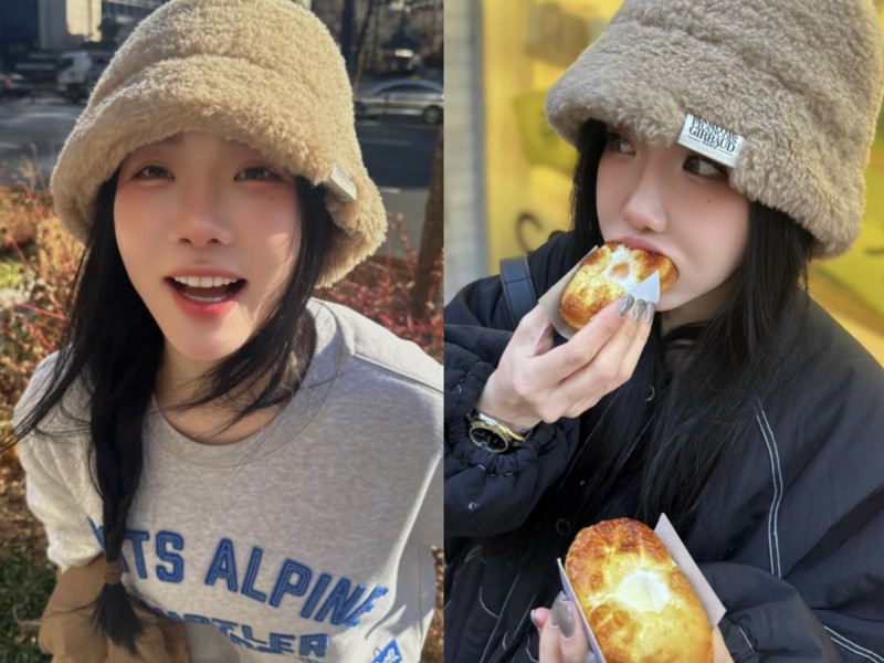 許允樂在Threads上曬出一系列「男友視角照」,可見她戴著毛絨漁夫帽,手拿看似韓國街頭小吃的點心,張嘴準備咬下的瞬間被捕捉,眼神專注在食物上,自然又可愛。另一張照片中,許允樂微微前傾靠近鏡頭,露出燦爛笑容、眼神直視拍攝者,滿滿都是戀愛中的幸福感,讓人一看就知道鏡頭後的人是誰。