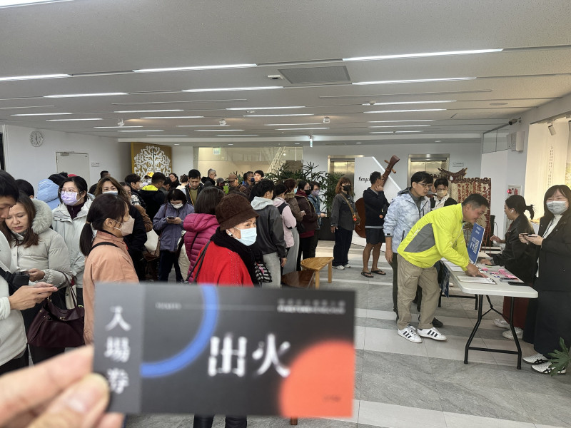 民眾湧入民謠館排隊搶動力火車演唱票。(記者蔡宗憲攝)