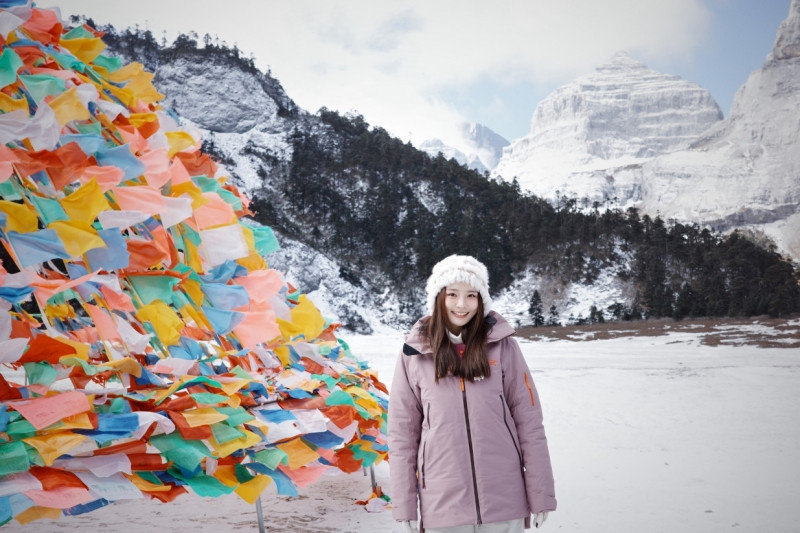 林莎在雲南巴拉格宗神山腳下。(中視提供)