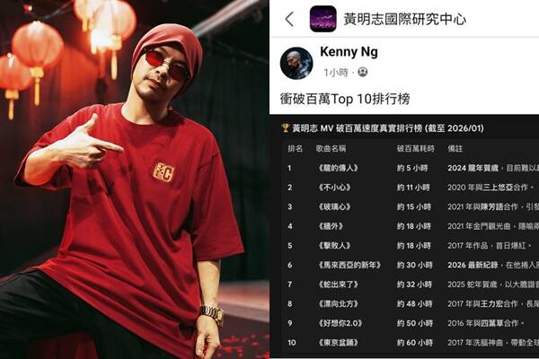 〔娛樂頻道/綜合報導〕馬來西亞歌手黃明志去年捲入謝侑芯猝逝命案,一度遭千夫所指,怎料上個月突迎來案情大逆轉,本來被控涉毒的他,驗尿報告呈現陰性,獲判無罪並當庭釋放。現處於口頭保釋期的他,並未忘情創作,年初復工「首炮」便是在YT推出賀歲歌《馬來西亞的新年》,不到30小時便突破百萬人觀看,目前累計到385萬,對相較於2024年紅翻天的《龍的傳人》不到5小時YT觀看數便突破百萬,讓他靈感大爆發,決定寫一首歌名長達54個字的新作,就叫做《龍的傳人不小心玻璃心碎一地到墻外的馬來西亞找擊敗人被蛇出來了然後漂向北方遇見一起跳東京盆舞的辣妹對她說好想你》。