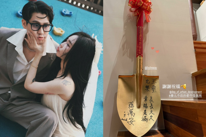 〔記者傅茗渝/台北報導〕李玉璽去年12月17日驚喜宣布完成結婚登記,與大他6歲的女友許允樂正式升格夫妻。李玉璽昨(9)日在社群平台曬出一份別具意義的神秘禮物,只見鏟身金光閃閃,上頭有台北市長蔣萬安的親筆簽名,還題上「長長久久、幸福美滿」的祝福字樣,他也簡短回應「謝謝祝福」。