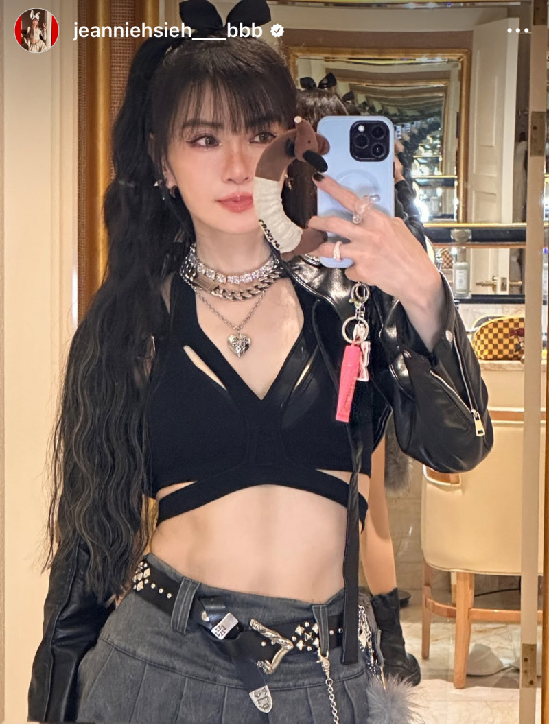 照片中,謝金燕身穿超短版皮衣,上半身幾乎遮不住,露出了螞蟻腰,川字馬甲線一覽無遺,逆天長腿全都露,畫面超養眼,也讓網友驚呼:「啊啊啊啊辣到我啦姐姐姐姐,瞬間都不冷啦」、「超級無敵霹靂正」、「啊啊姐姐腹肌鯊我」。