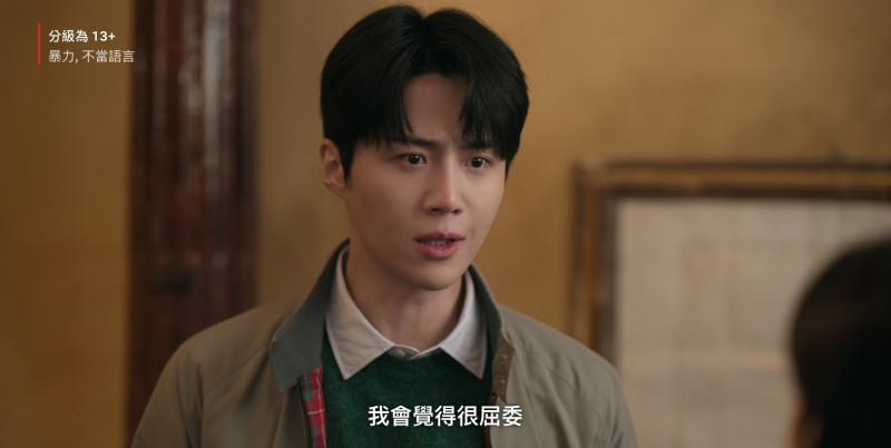 金宣虎在《愛情怎麼翻譯?》說的是「委屈」,字幕卻寫成「屈委」。(翻攝自Netflix)